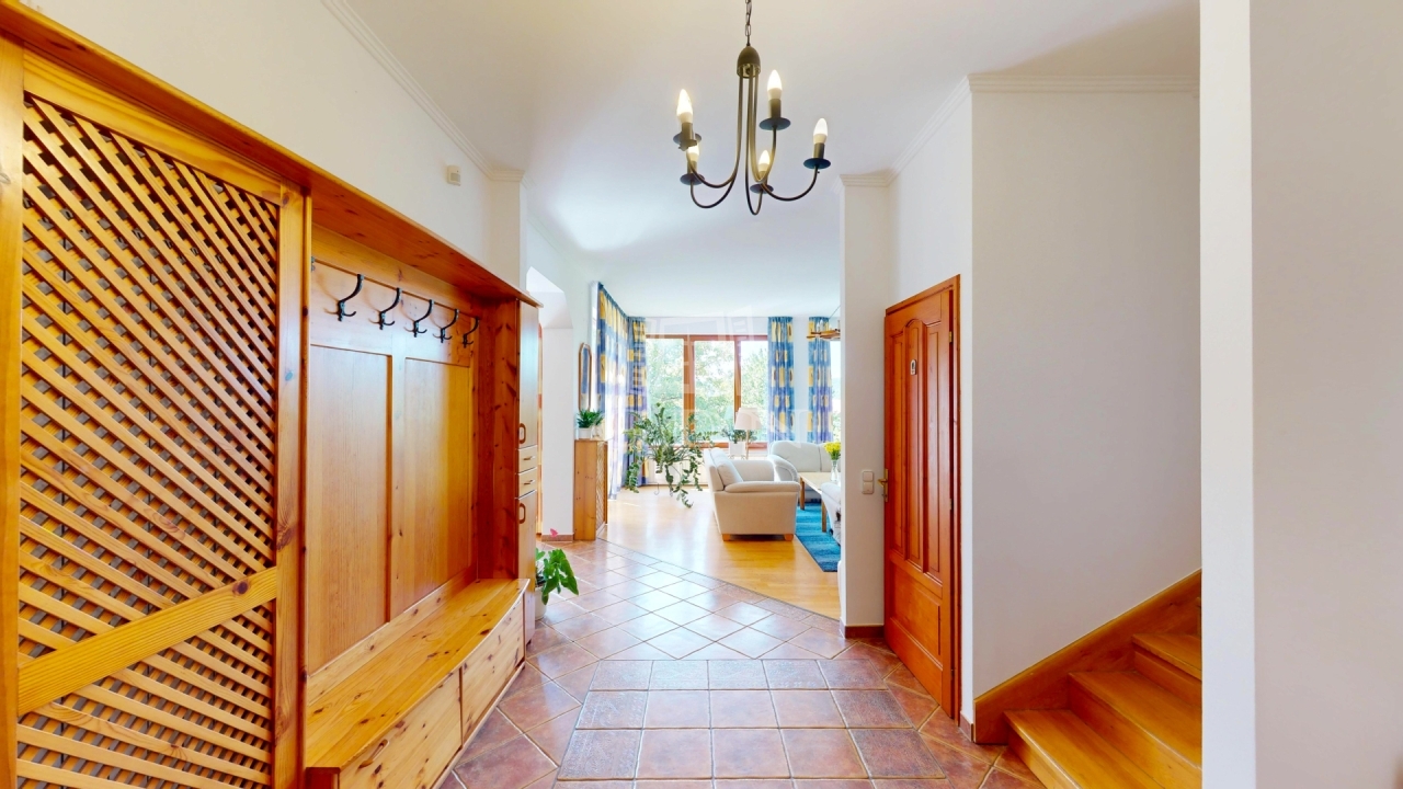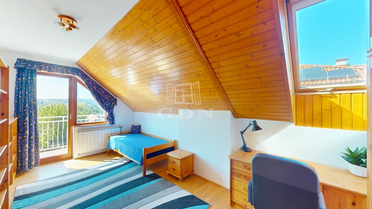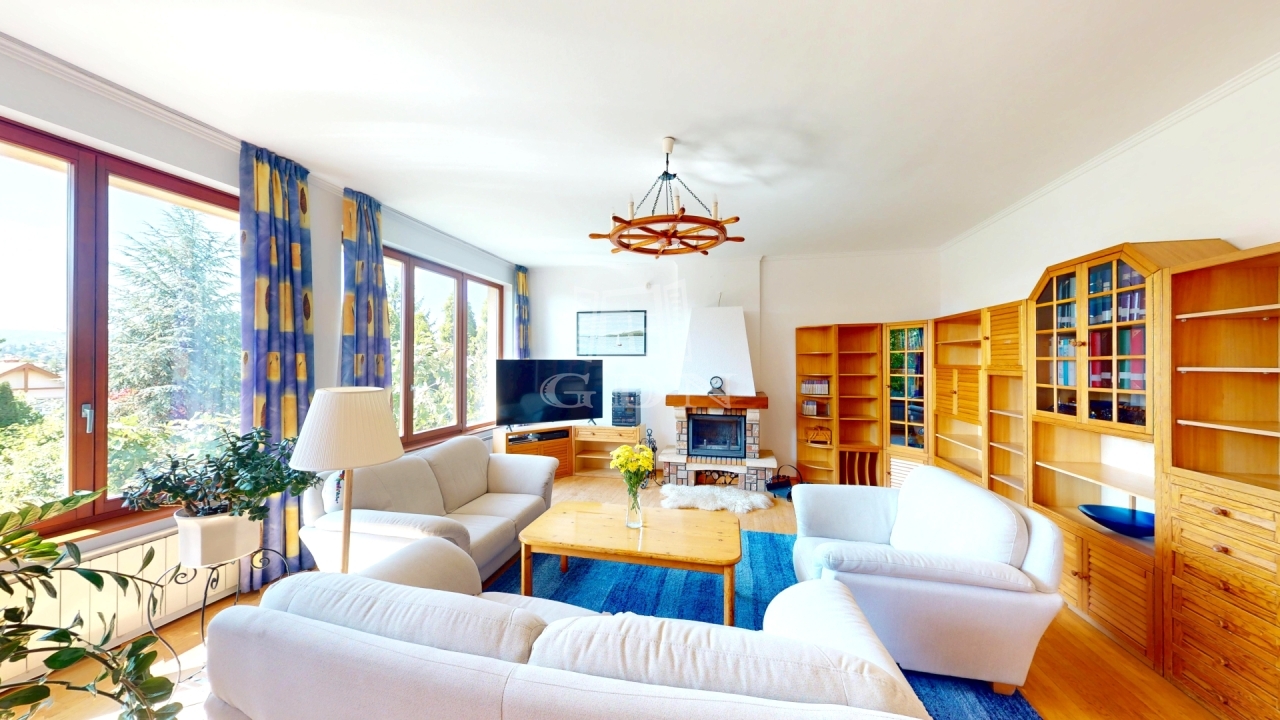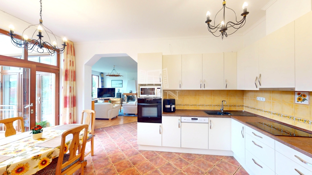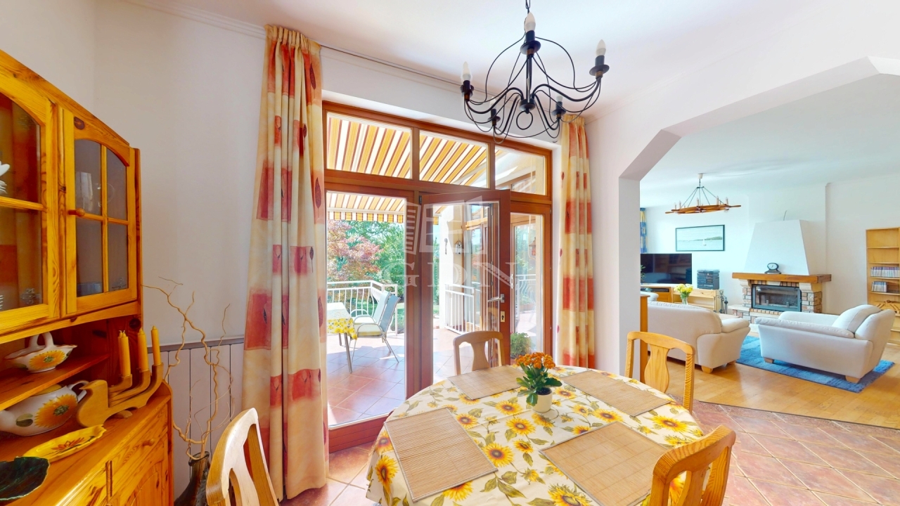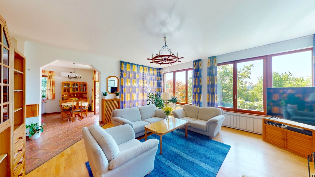 A ház 273 négyzetméteres területen kínál tágas életteret egy 902 négyzetméteres zöldellő kerttel.