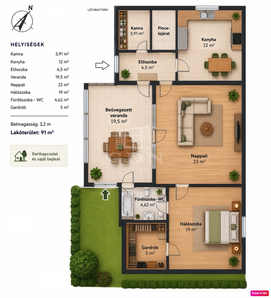Az ingatlan alatt részben pince húzodik, ahol a kazán kapott helyet.