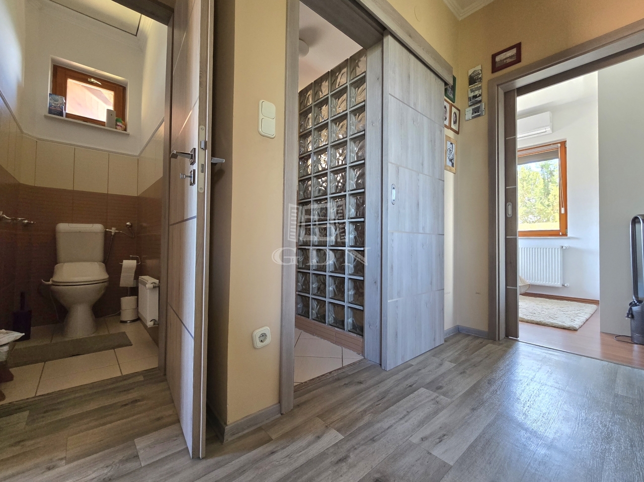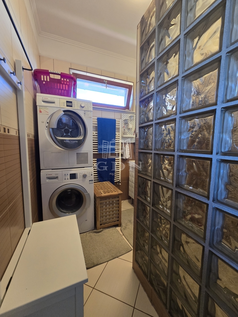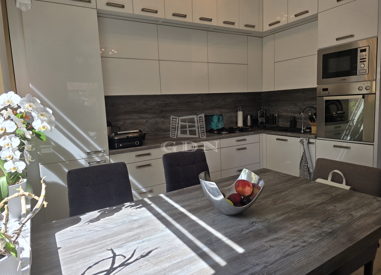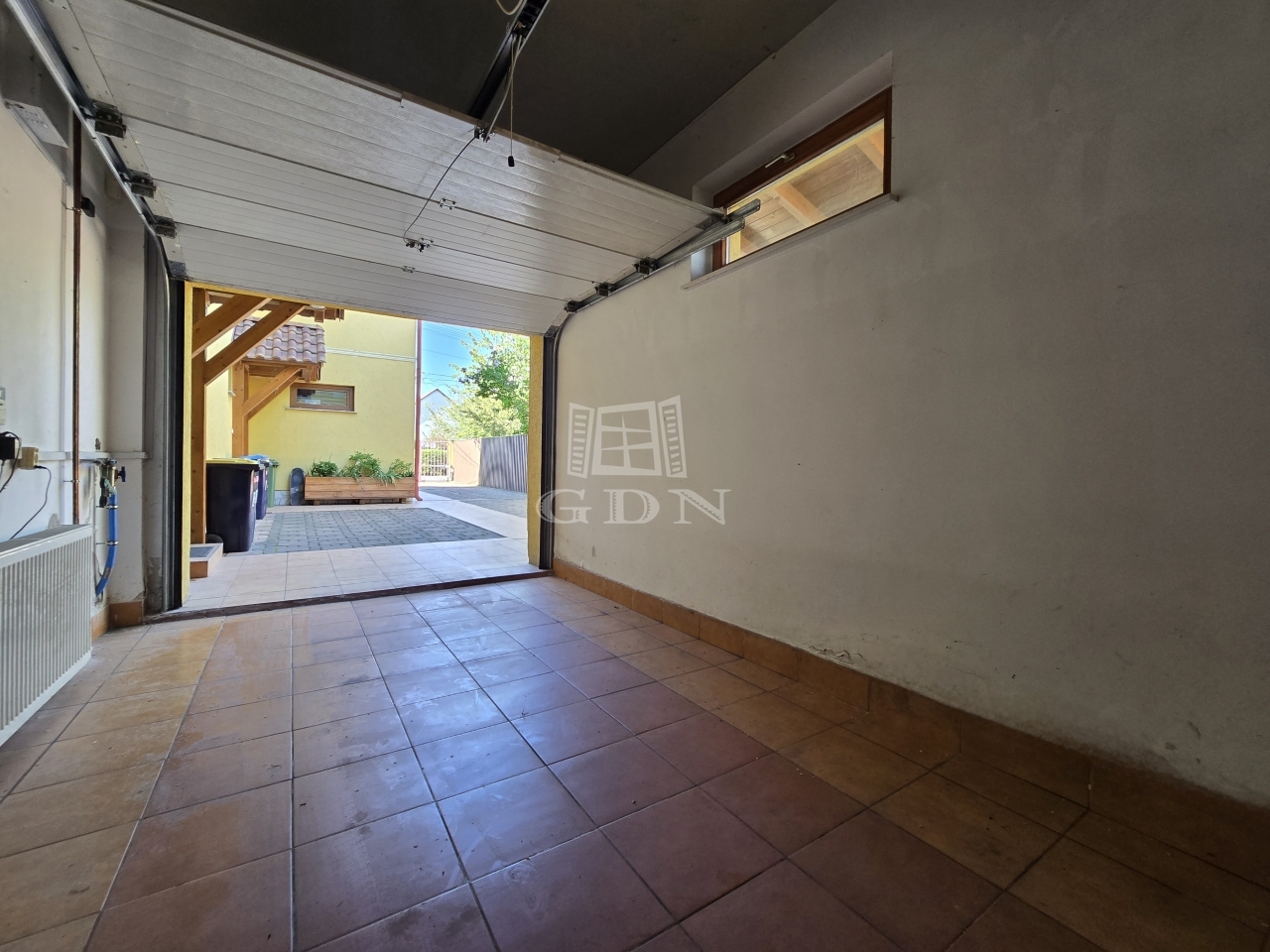 Parkolás: a telken egy zárt, távirányító kapus garázs, és egy nyitott, de fedett autóbeálló található.