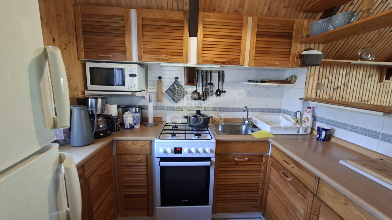 • Különálló, gépesített konyha ízléses fa frontokkal