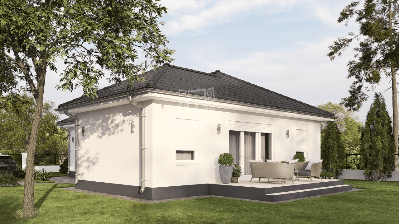 A hirdetésben szereplő ingatlan a Poszeidon típusház. A Poszeidon ház ára a kulcsrakész állapot alapján került kiszámításra.
