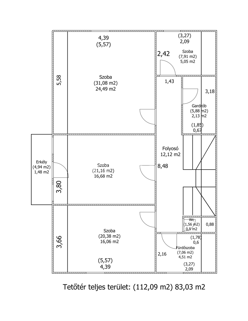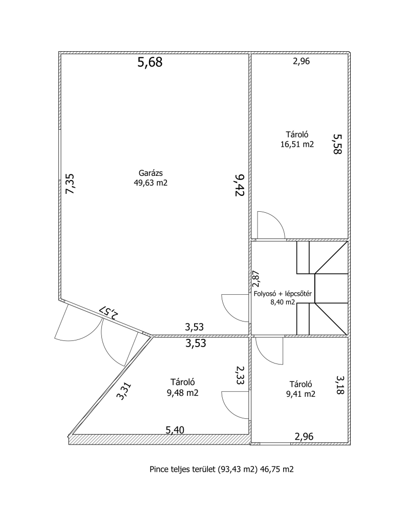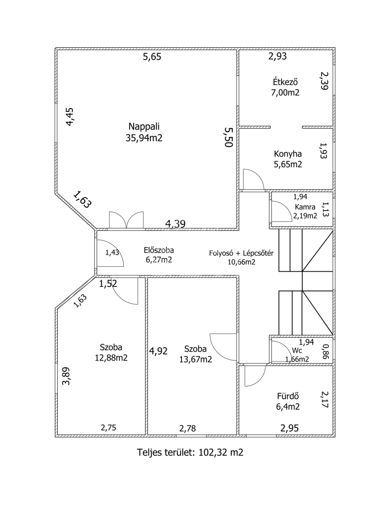 A ház háromszintes kialakítású (pince, földszint, emelet), összesen 6 szobával, hálófülkével és gardróbbal, valamint két fürdőszobával és toalettel. A földszinten egy tágas, jól felszerelt konyha található. A pincében dupla garázs kapott helyet, amelyhez fűtőszálas jégmentesítő rendszerrel ellátott lejáró tartozik – praktikus és kényelmes megoldás a téli hónapokra.