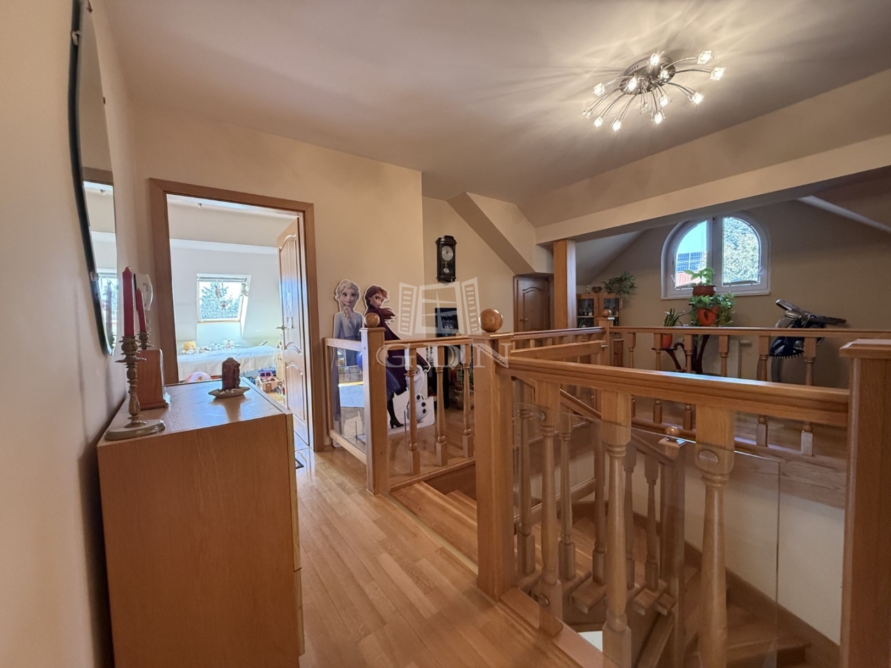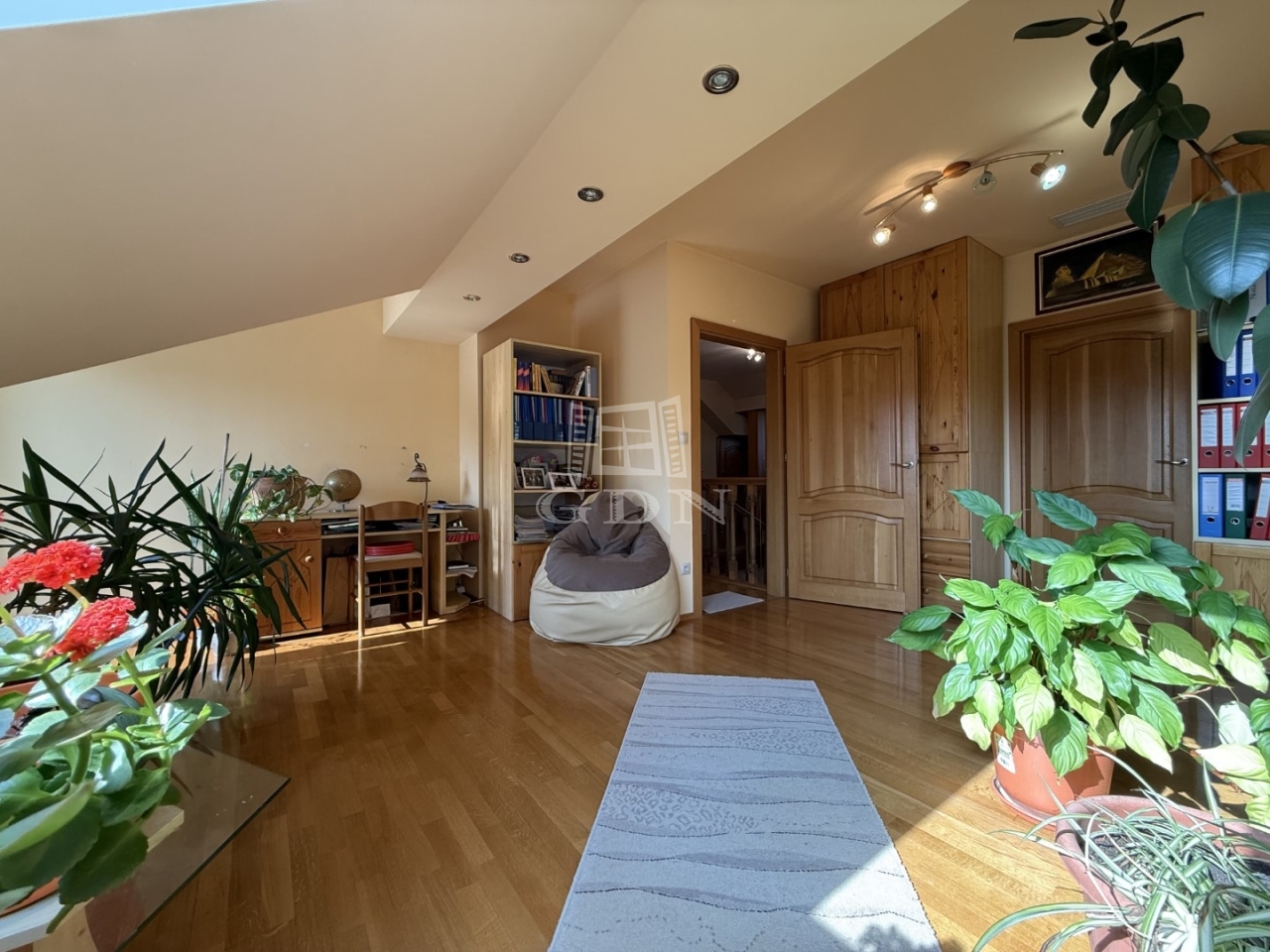 Tetőtér : A központi lépcsőn keresztül közelíthető meg. Itt helyezkednek el a további hálószobák, 2 hálószoba saját fürdőszobával, és gardróbbal rendelkezik.. A galéria másik feléről közelíthető meg a jelenleg tároló/ vendégszobaként funkcionáló + még 2 szoba.