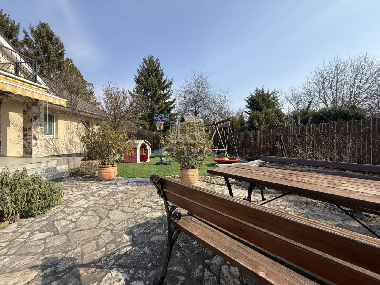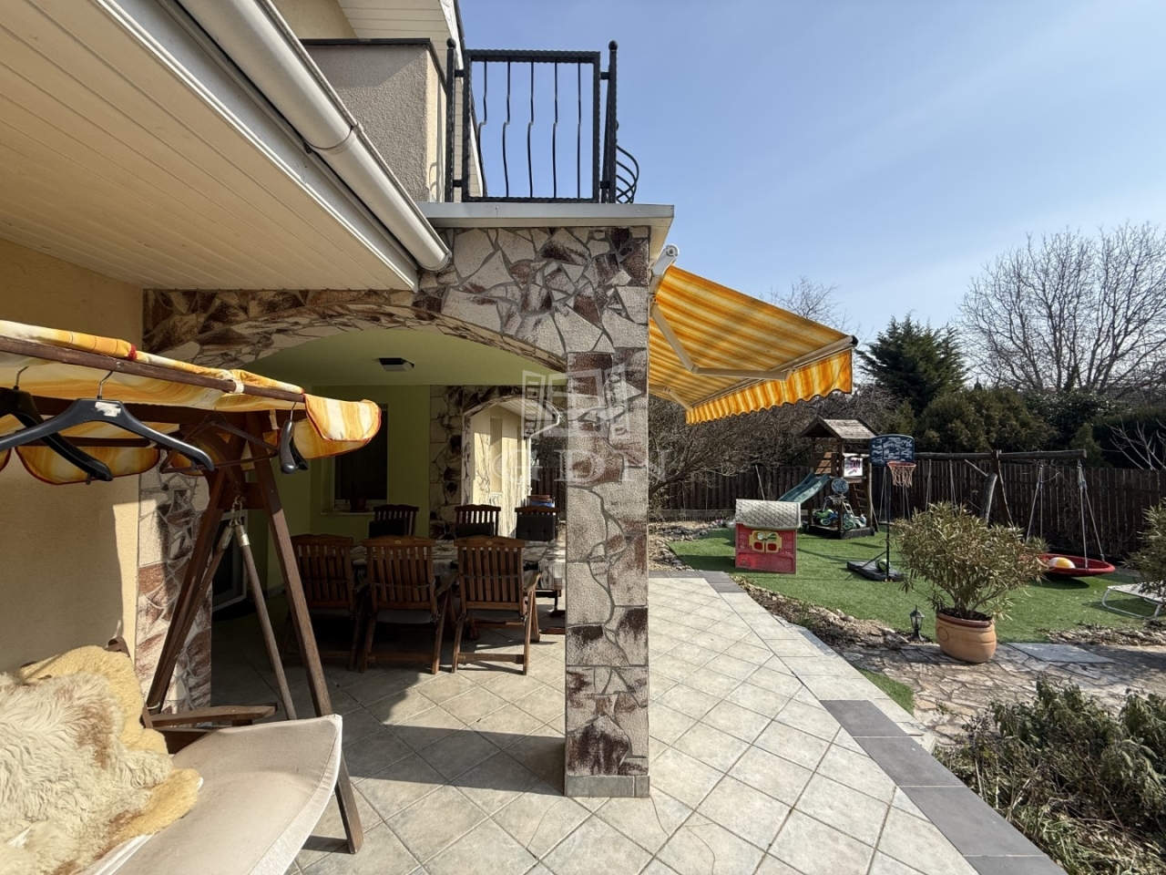 A kert szépen gondozott, parkosított. A hátsó telekrészen került kialakításra egy melléképület, kerti sütögető, gyermekjátszótér…..