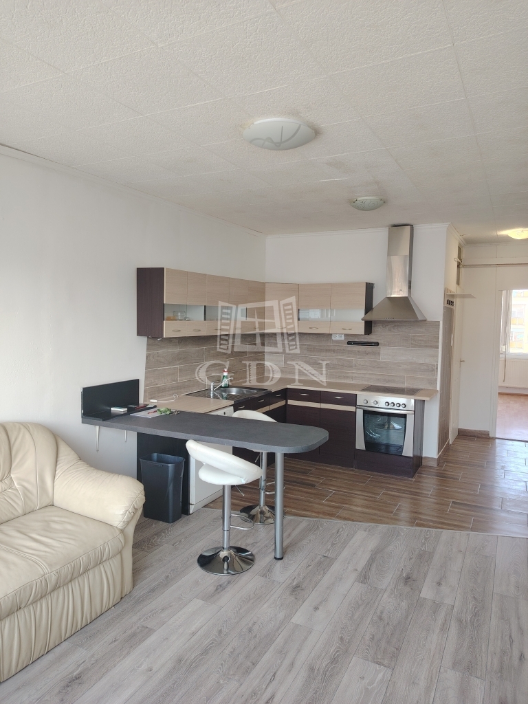 A lakás a 4. emeleten található, kilátással a parkra és az utcára. A lakásban amerikai konyhás nappali került kialakításra, gépekkel felszerelve (hűtő, mosógép, mosogatógép,
