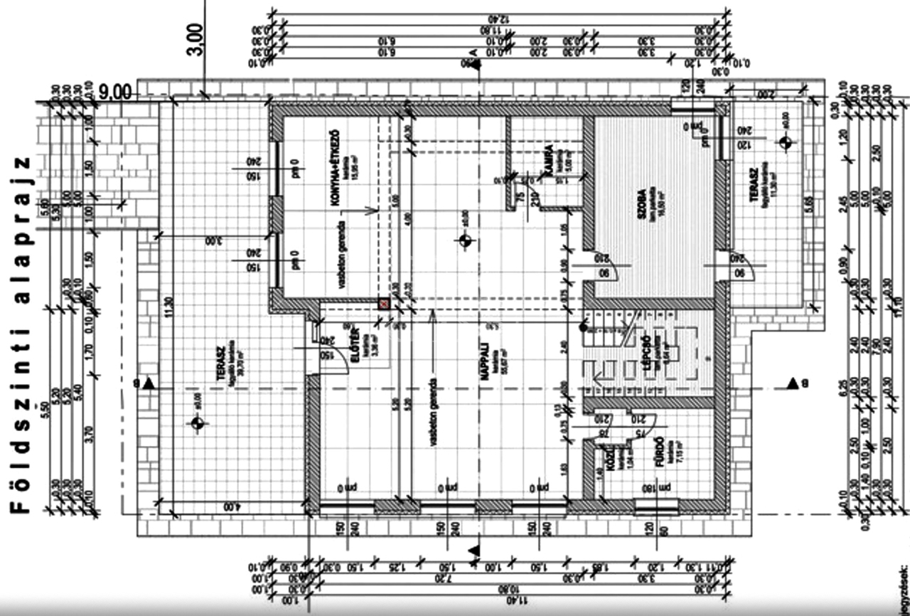 A FÖLDSZINTEN nagyméretű, tágas nappali(55,87 m2) étkező- konyha(15,95 m2), kamra, dolgozószoba(16,8 m2) és egy fürdőszoba(7,2 m2) teszi kényelmessé a család életét.