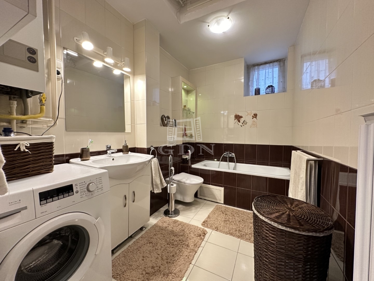 A modern konyha minden fontos géppel felszerelt. A beépített szekrények minőségi anyagból készültek, maximális kihasználtsággal lettek a lakásba tervezve. A nagy méretű, ablakoknak köszönhetően a helyiségek nagy világosak.
