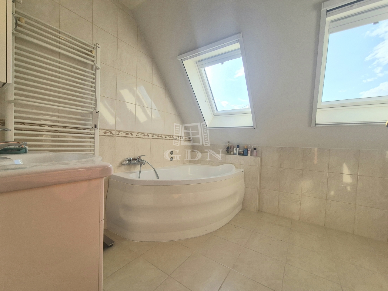 A jól kialakított, kellő belmagassággal rendelkező tetőtérben 4 különnyíló hálószoba, egy sarokkádas fürdőszoba, külön wc-bidével került kialakításra.