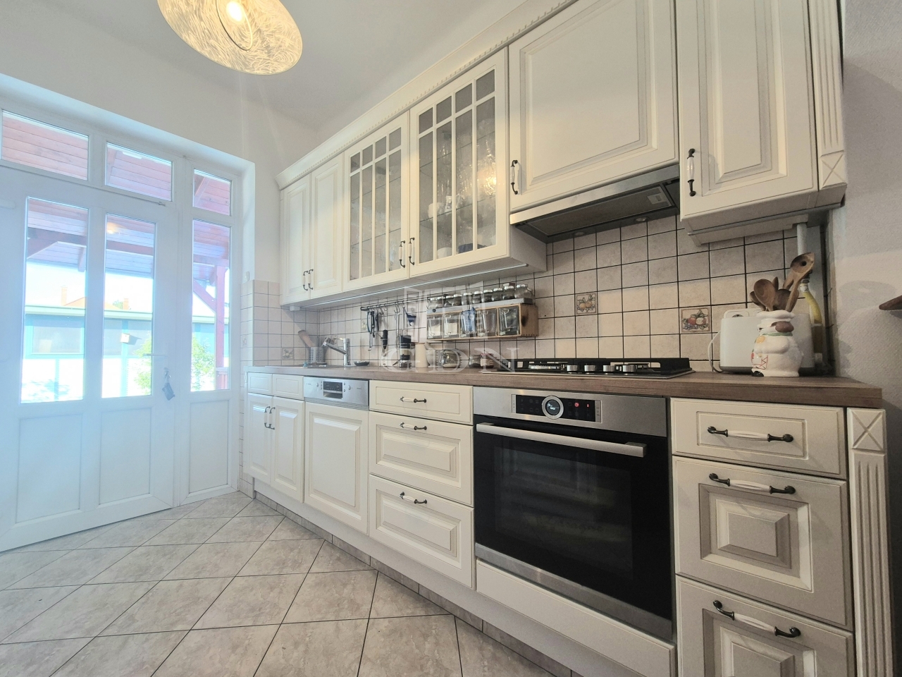 A 178 m2 alapterületű ingatlan földszintjén egy teraszkapcsolatos konyhát, méretes étkezőt, hálószobát, nappalit, fürdőszobát találunk.