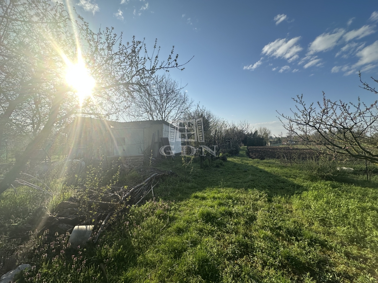 A gondozott területen gyümölcsfák és szőlőtőkék, valamint egy kis 12 m2-es kerti felépítmény található.