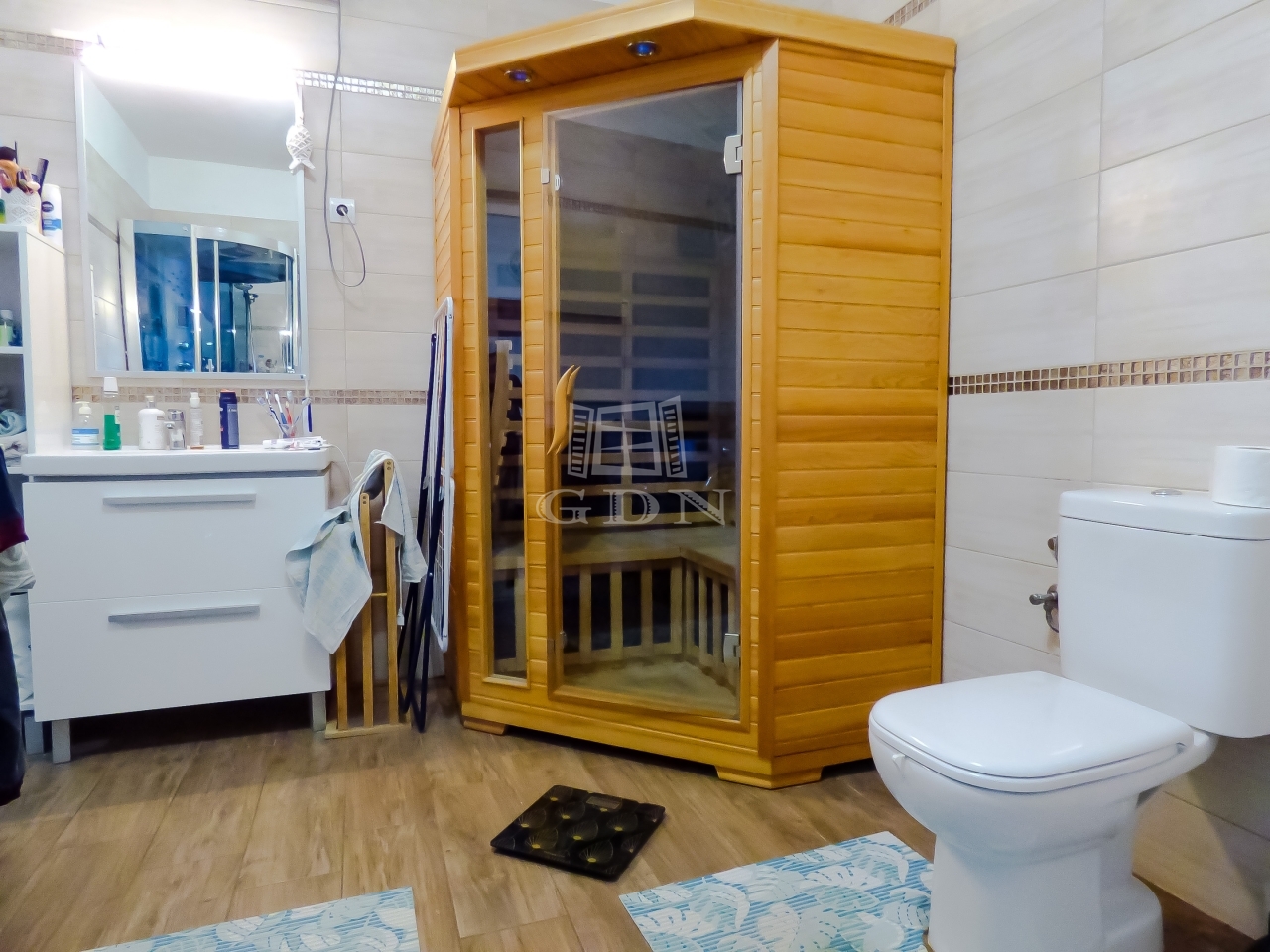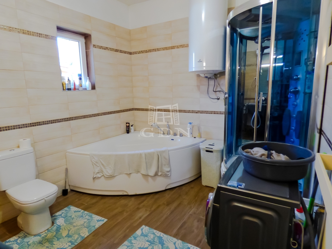 XVII. kerületben, Régiakadémia telepen különálló, körbejárható, 701 nm-es telken lévő, 98 nm-es, 3 szobás, jó állapotú (2020-ban felújított, hideg burkolatok, nyílászárók 3 rétegű thermo műanyag, villanyvezetékek, dryvit szigetelés), kondenzációs gáz cirkó fűtésű, hűtő - fűtő klímával felszerelt (4 db), Keleti fekvésű, FEDETT, NAGY TERASZOS (23 nm), NAPELEMMEL ELLÁTOTT, rendkívül alacsony fenntartási költségű, FŰTHETŐ MEDENCÉS (hőszivattyú), rugalmasan birtokba vehető, TEHERMENTES, kamera rendszerrel és riasztóval biztosított családi ház eladó.