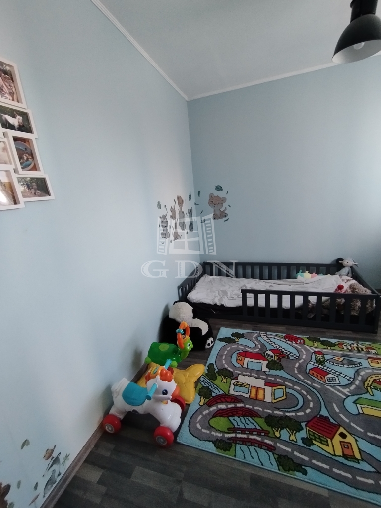 A lakásban két szoba található, melyek közül az egyik ablakából a ház mögötti park nyugodt látványa tárul elénk. A parkban játszótér is található, így ideális választás családosok számára is.