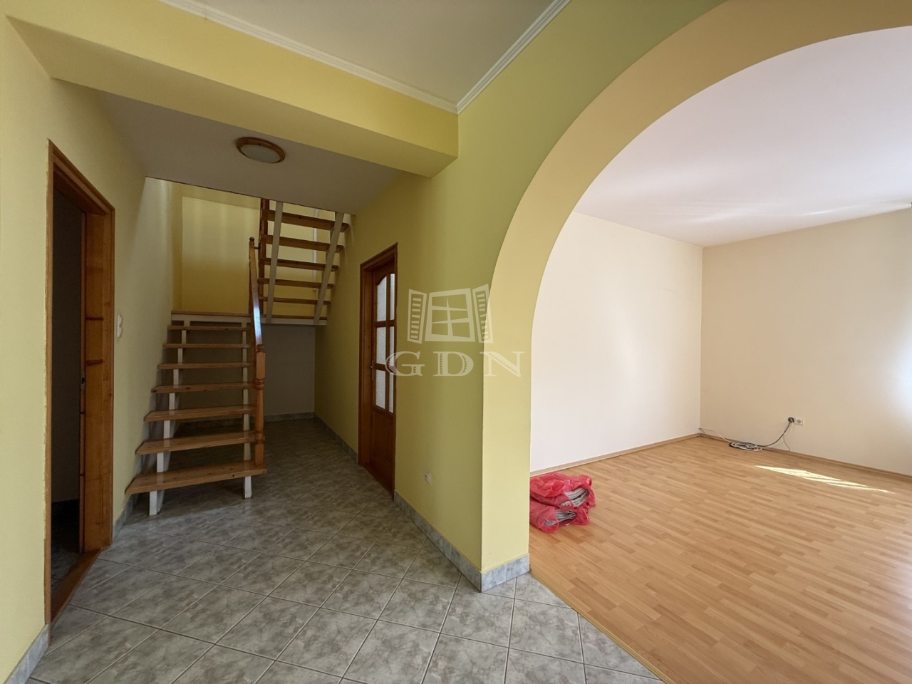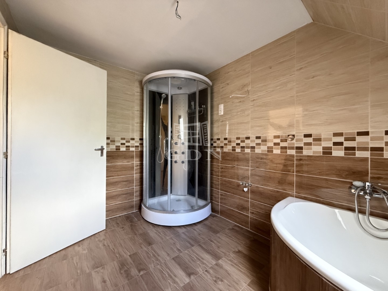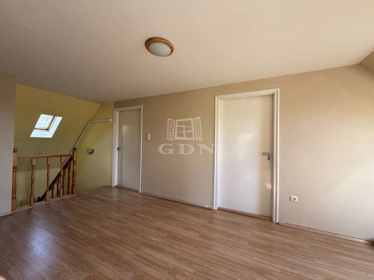 A felső szint: tágas világos nappali + 3 szoba ( az egyikhez gardrób lehetőség, fürdő ( kád és zuhanyzó is ) wc-vel elosztású.