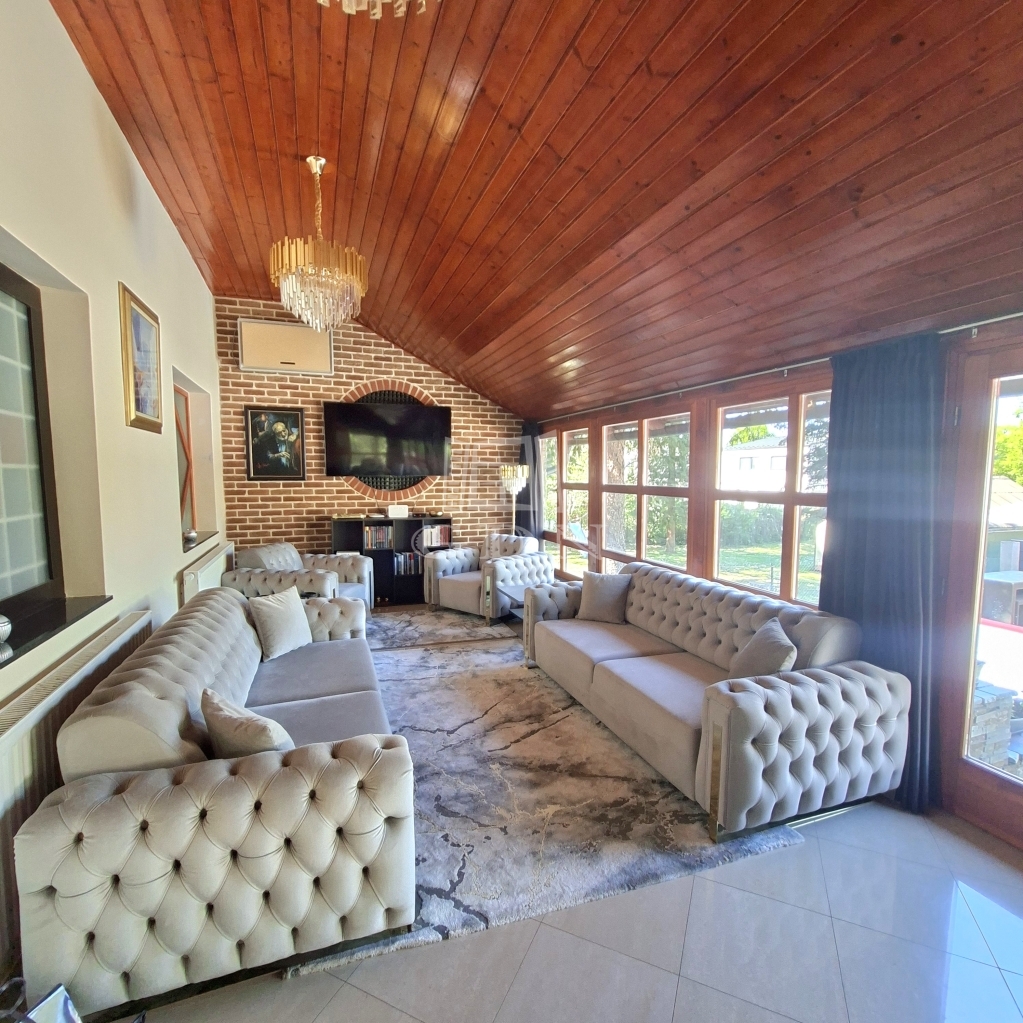 És hogy mitől különleges? Mert nagyon szép kőburkolatokkal látták el, mert ebben a természetközeli ingatlanban jó minőségű fa nyílászárók vannak, nagyon szép falépcsőn tudunk feljutni a tetőtérbe. Mert az udvaron igazán lehet pihenni, azért mert csend van, mert kettő, fedett pihenősarkot is kialakítottak. A szépen gondozott kertben van bőven hely a kertibútorok, napernyők számára így barátokkal és a nagyobb családdal is kényelmesen tudunk kikapcsolódni. Egy kisebb medencében lehet fürdeni, hűsölni meleg napokon. A kerítés is kőburkolat és gondozásmentes kerítéselemekből áll, ezzel teljesen intim szférát hoztak létre. Két utca felől is be tudunk jutni kapun keresztül autóval, a harmadik oldalon pedig személyi bejárat van.