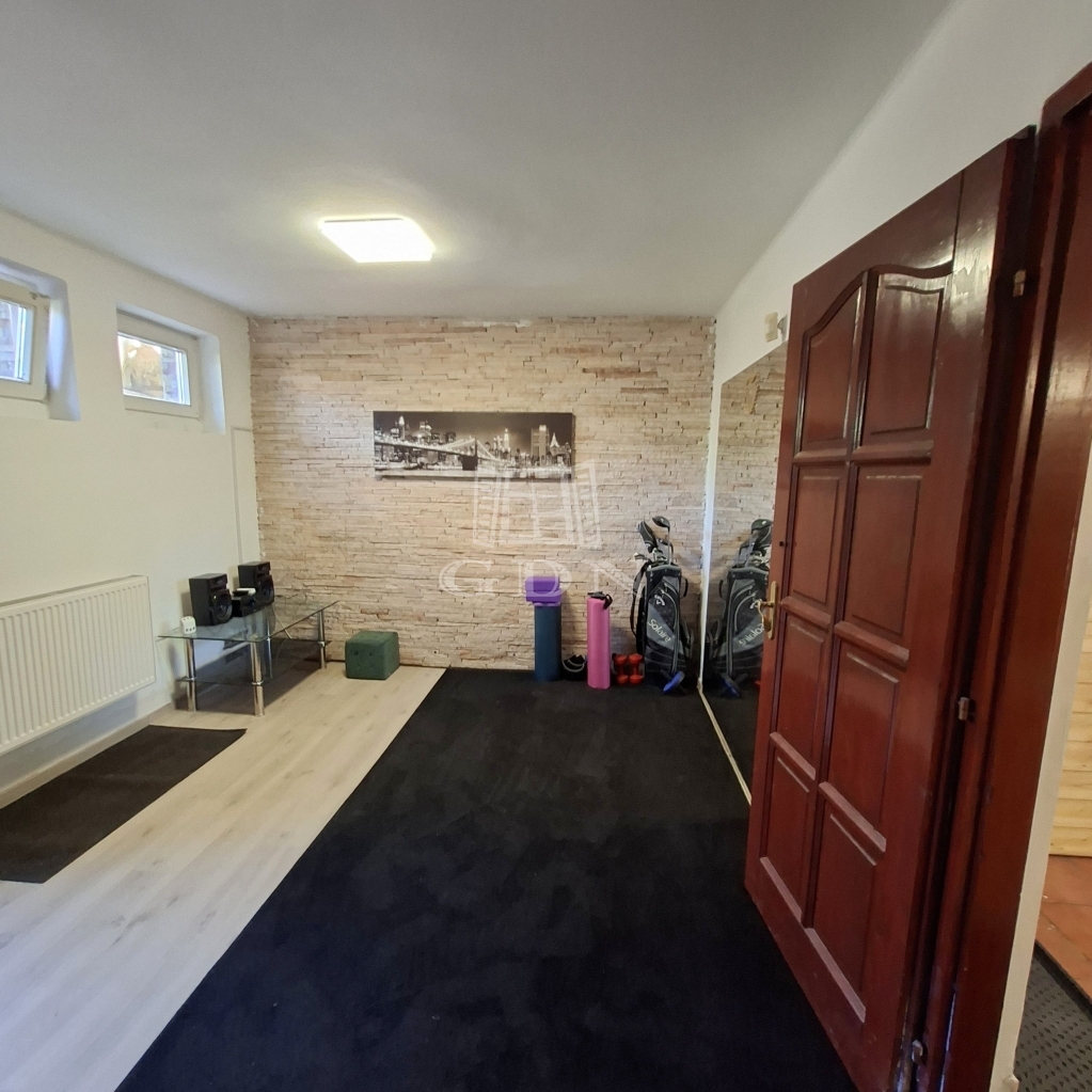 A 84 m2-es szuterén szinten került kialakításra a garázs, ahol helyett kapott egy szauna (infra és kályhával is működtethető) és gépészeti helyiség is. A régebbi tárolók, átalakítás után új funkciót kaptak, mint szoba, fürdő, edzőterem és persze maradt még hely egy nagyobb tárolónak is.